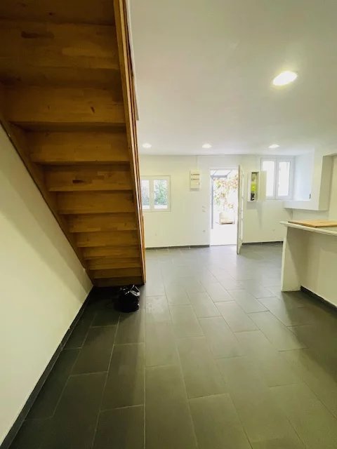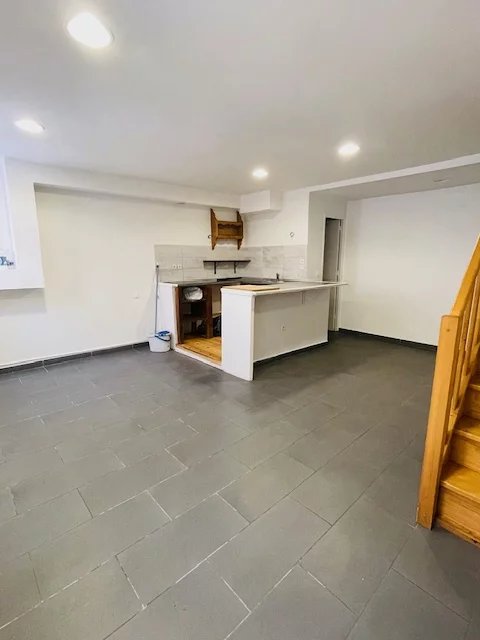 Rez-de-chaussée : une pièce de vie lumineuse avec cuisine ouverte aménagée et équipée, ainsi qu’un WC indépendant.